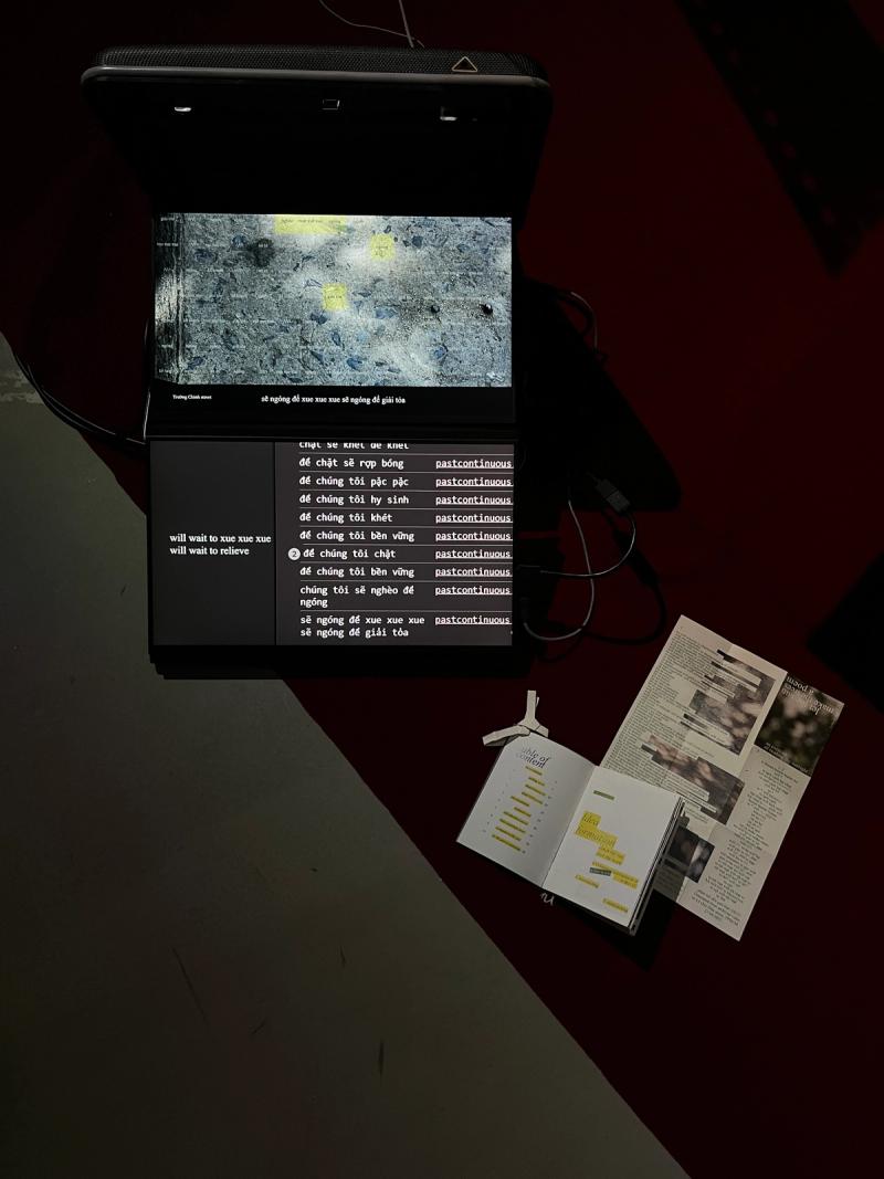 để quá khứ sẽ (tiếp diễn) (loosely translated: for the past will (continue)) delves into the layered intersections of memory, language, and urban landscapes. Through an autogenerated poetry mechanism, shadows of trees cast on walls by sunlight serve as a metaphor for the way the past unfolds and lingers in the present. This work is a manifestation of tree’s “freedom of speech’; it allows the trees to