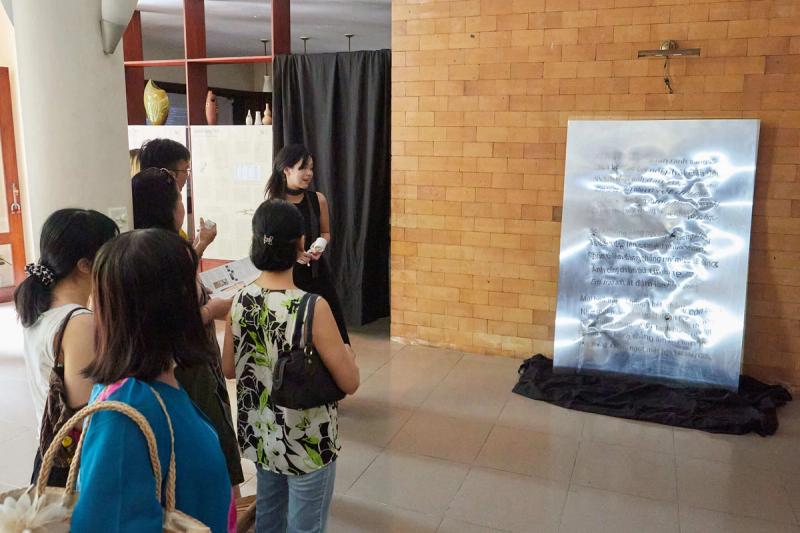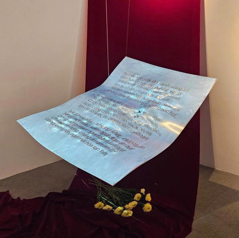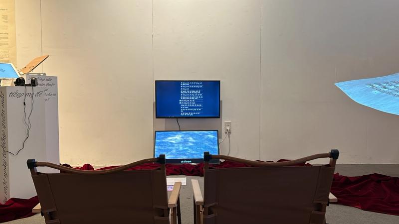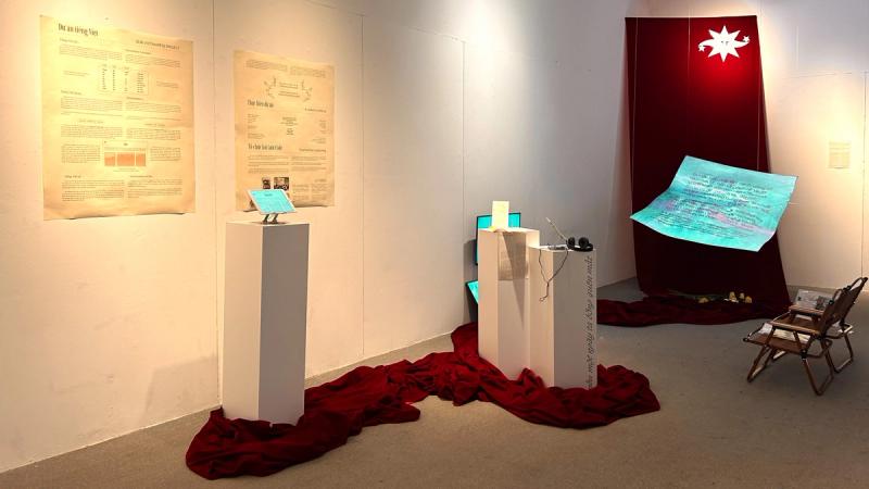 To be honest, I’ve never been particularly good with words or literature. And in the past, since I thought of myself as Vietnamese and Vietnamese as my mother tongue, I neglected to really nurture it—focusing instead on learning other languages. But in the past year or two, especially after hearing Yui talk about the Vietnamese Language Project, I’ve come to realize that Vietnamese is far more beautiful and unique than I’d thought. The exhibition on September 28 really affirmed that. It enlightened me about the roots of the Vietnamese language and helped me see that Vietnamese is truly something special, haha. The atmosphere of the exhibition felt very Vietnamese, which matched the theme perfectly. They also played 432Hz frequency music, which was incredibly soothing—it made me want to just sit there, look at the trees and sky, and reflect on everything I had just read and seen. I really appreciated the way the artists combined language with art, technology, culture, and social issues. It made me realize how deeply language is connected to the cultural and historical context of a country.