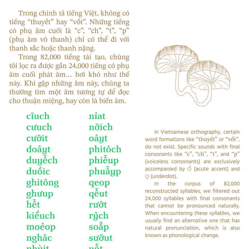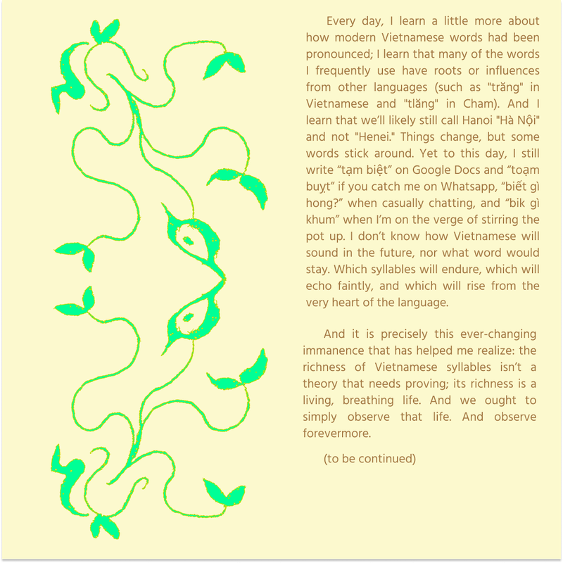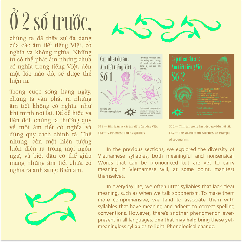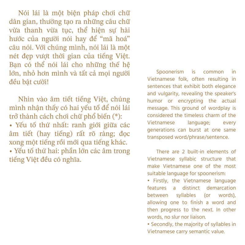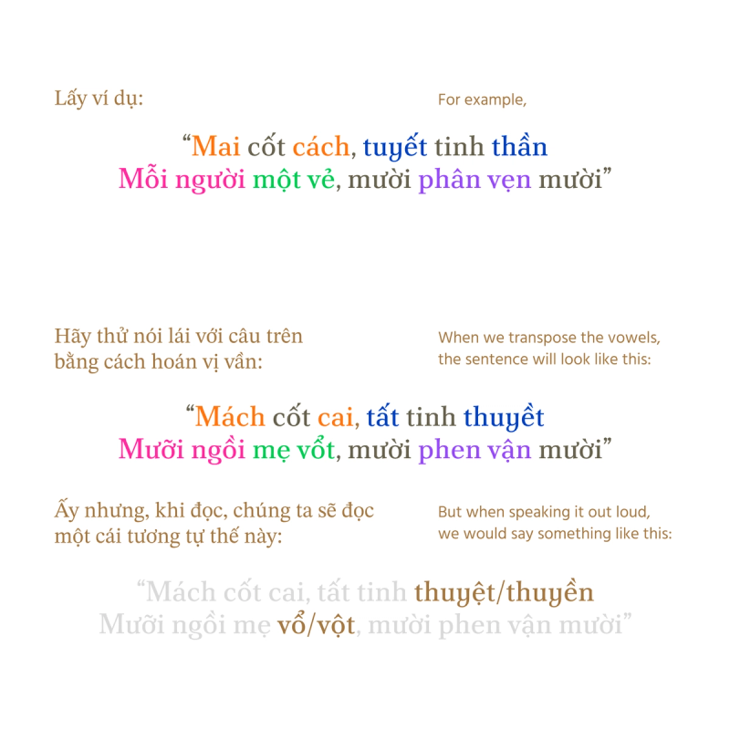 Continued on that, we looked deeper into the monosyllabism of Vietnamese, reflecting on spoonerism and the phonetic change from time to time. The entire research was published in 3 episodes.