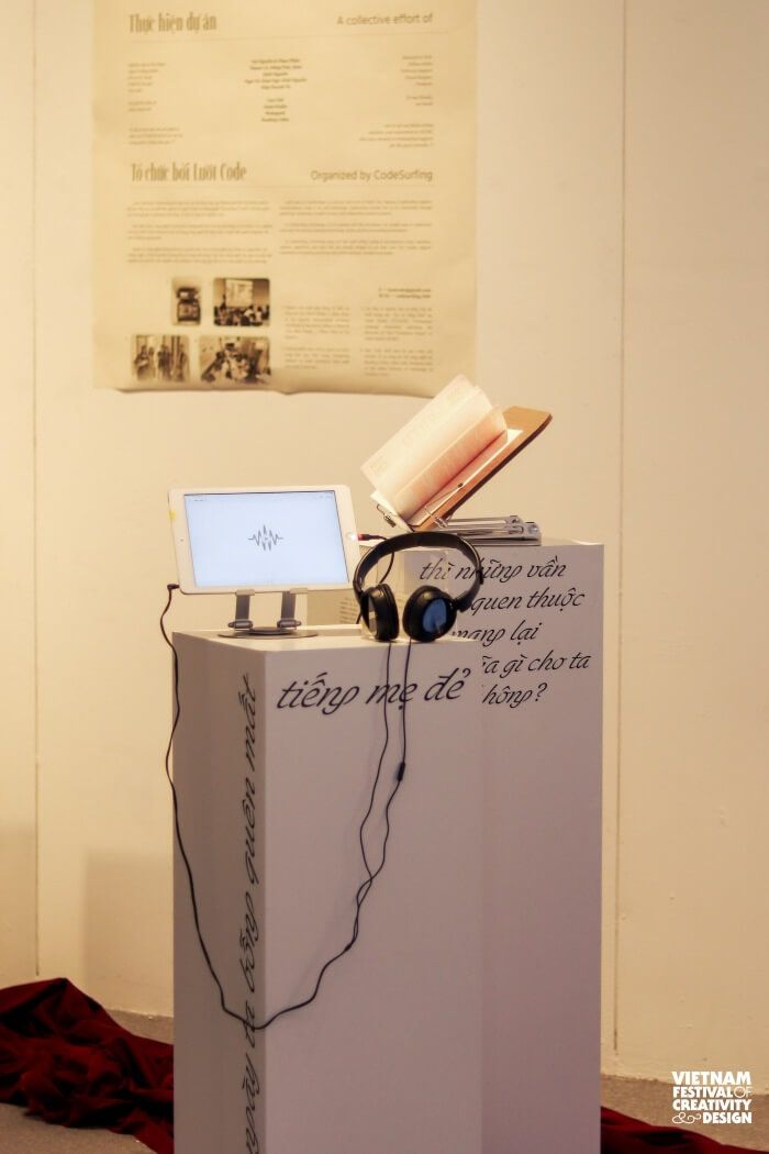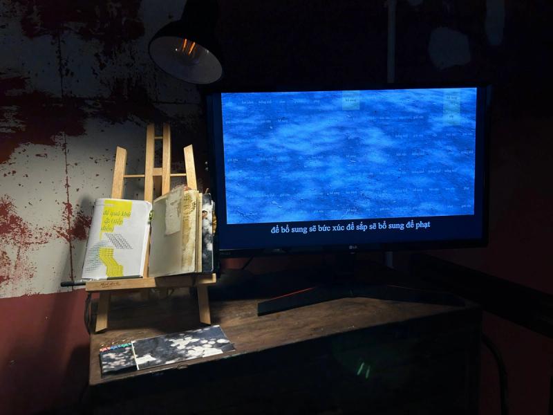 On Saturday morning, I gave up sleeping in to visit the Vietnamese Language Project by Lướt Code. Lướt Code is quite an eccentric creative collective that might make you a little wary when you first meet them. Don’t worry—they’re actually very sweet. This community was founded with the hope of integrating technology into artistic creation, so that technology no longer feels like something distant or unreachable. In this project, they use coding to play with the Vietnamese language. I came across three artists—Dmarc, Trúc, and thou—with three works: